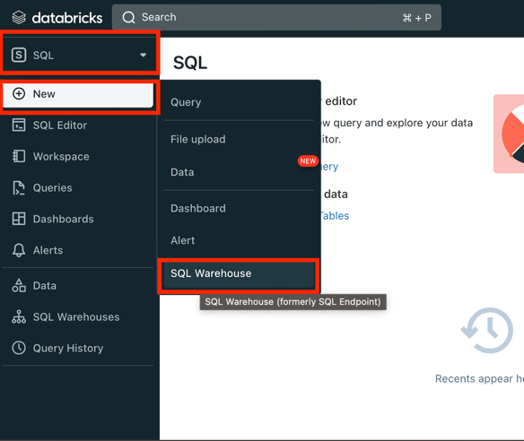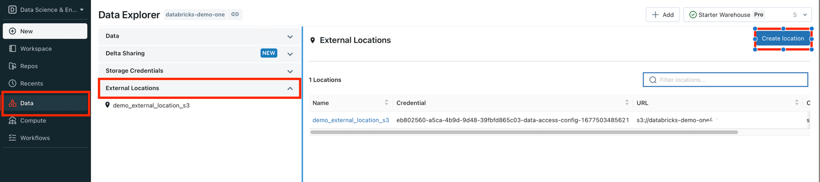 Datasection, expand onExternal Locationand clickCreate Locationbutton: