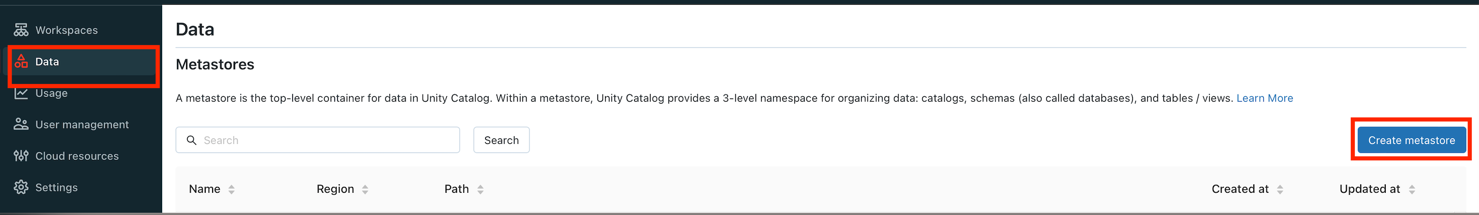 IMPORTANT: The metastore should be in the same region as the workspaces you want to use to access the data. Make sure that this matches the region of the cloud storage bucket you created earlier.