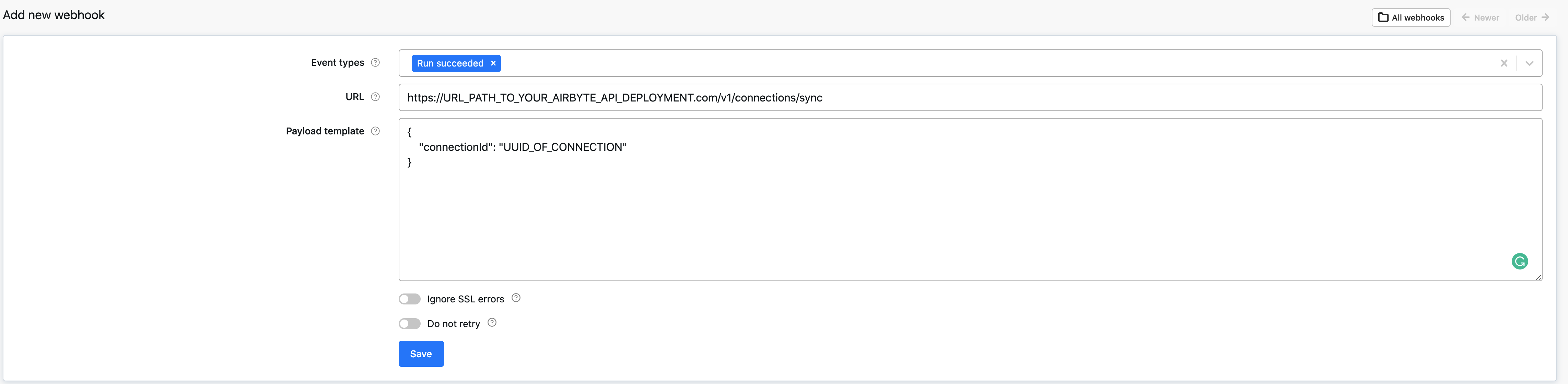 Running Airbyte sync from Apify webhook